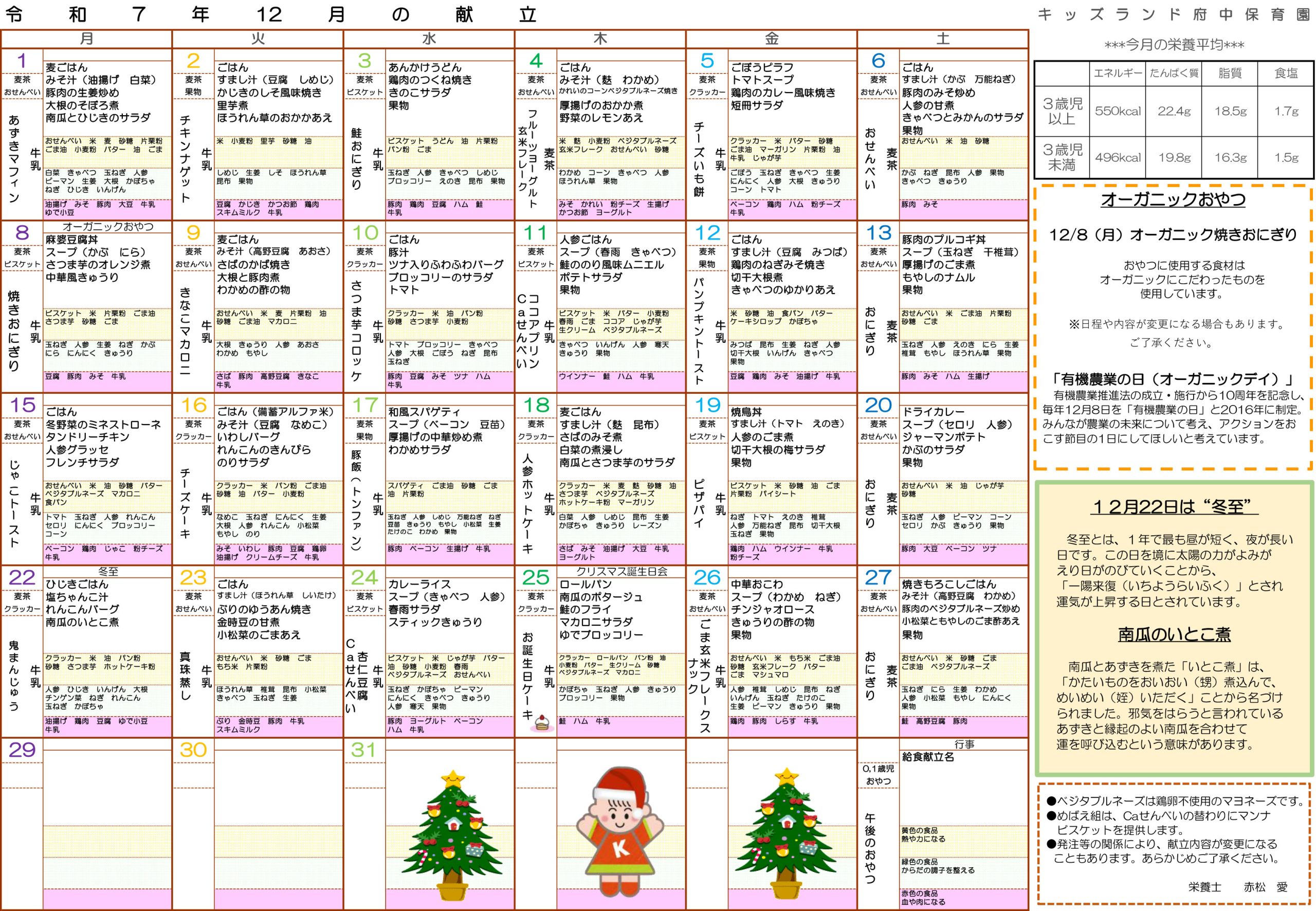 キッズランド府中保育園 お知らせ